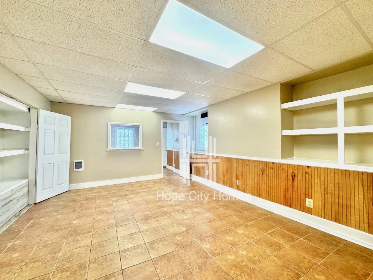 Basement commercial space that can be used for a salon, retail, or office. Includes entry area, main area, bathroom, washroom with plumbing hookup, and back room. Electric/Gas utilities not included in the price. Water is included.